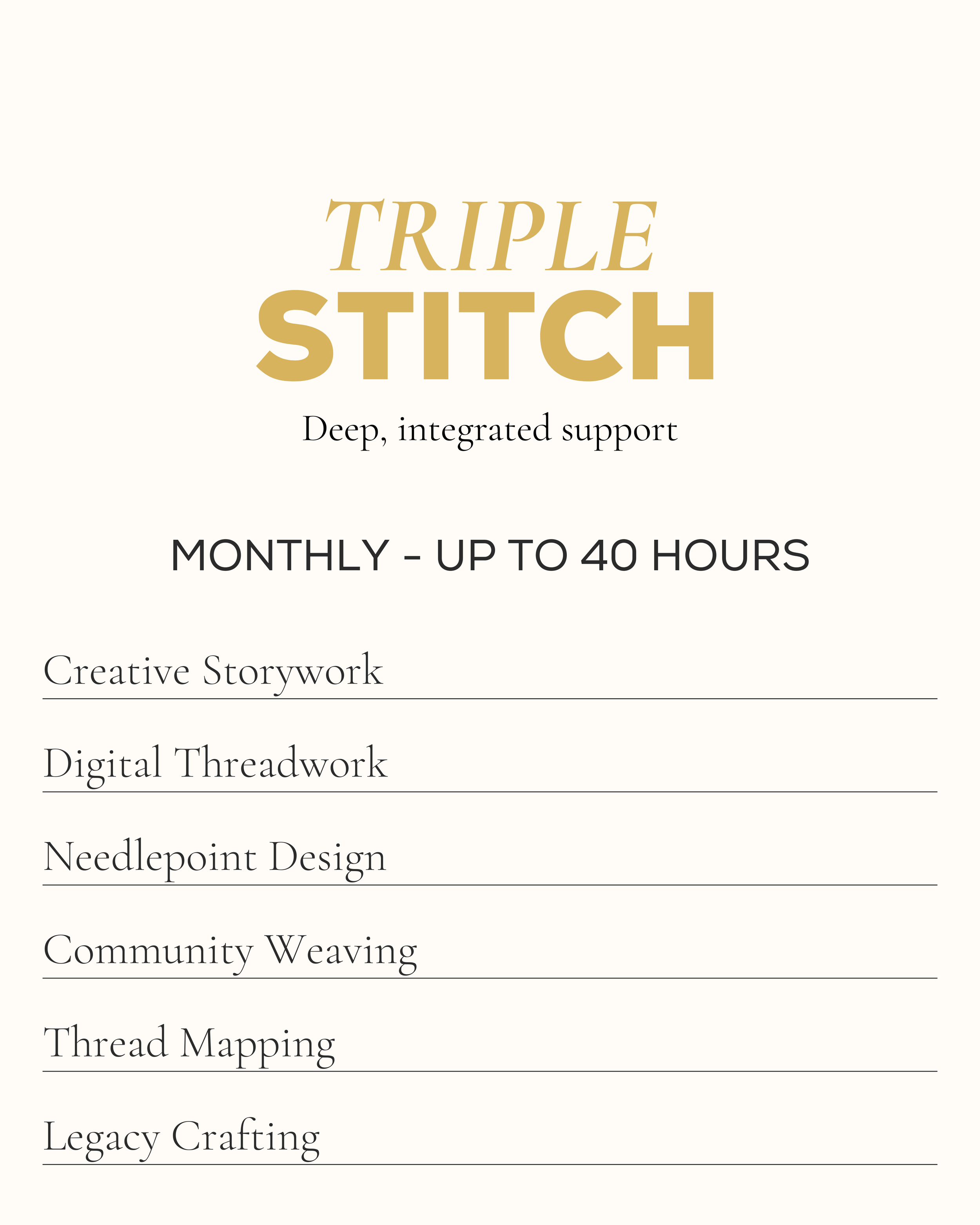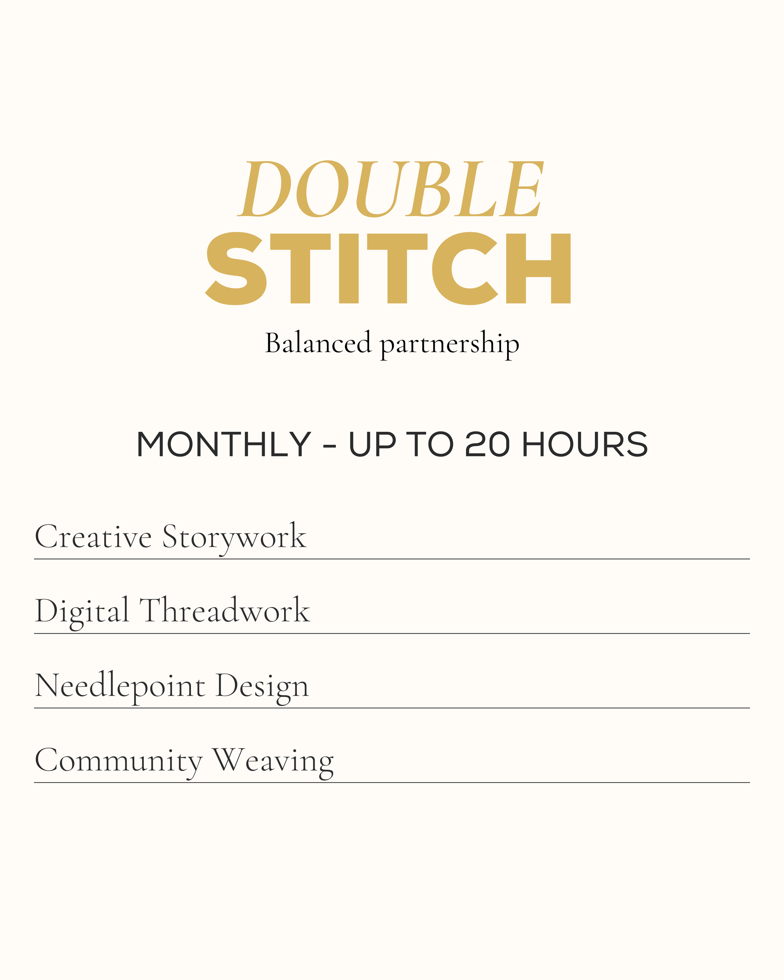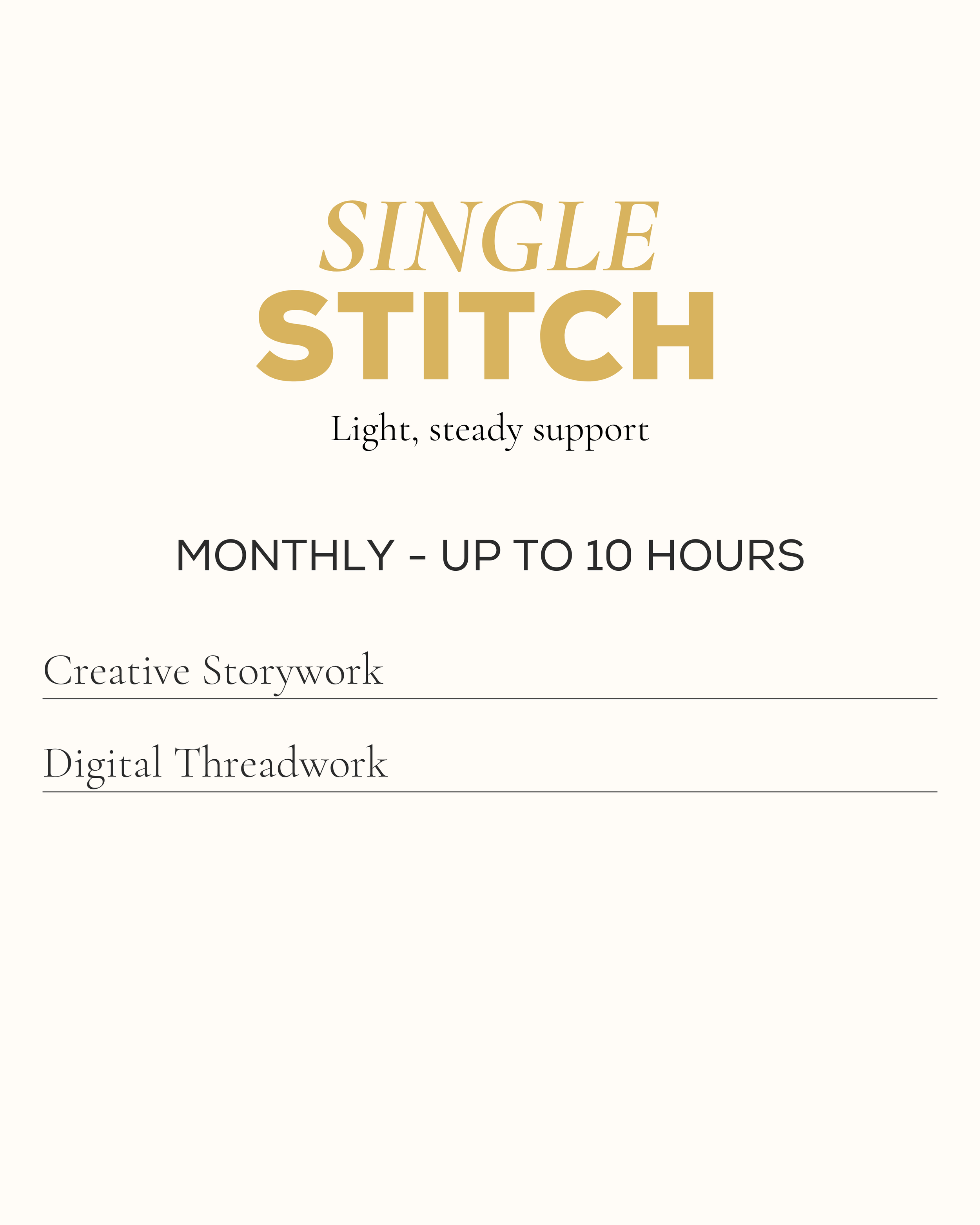 MONTHLY STITCH MEMBERSHIPS Ongoing monthly marketing & strategy support → Best for clients who want consistent partnership and momentum.